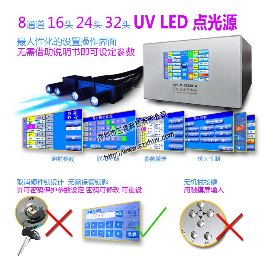 UVLED點(diǎn)光源控制器用專用的LED驅(qū)動(dòng)IC,采用開關(guān)式恒流驅(qū)動(dòng)控制,適應(yīng)寬電壓輸入,效率高,驅(qū)動(dòng)IC不需要添加散熱器,控制器為全鋁機(jī)箱全密封,長時(shí)間持續(xù)使用的情況下機(jī)箱內(nèi)外溫度都還是很低。電路設(shè)計(jì)中所有需要考慮電流通過能力的場合,都采用了高余量設(shè)計(jì),不存在局部發(fā)熱的問題,所以主機(jī)很耐用和很穩(wěn)定;