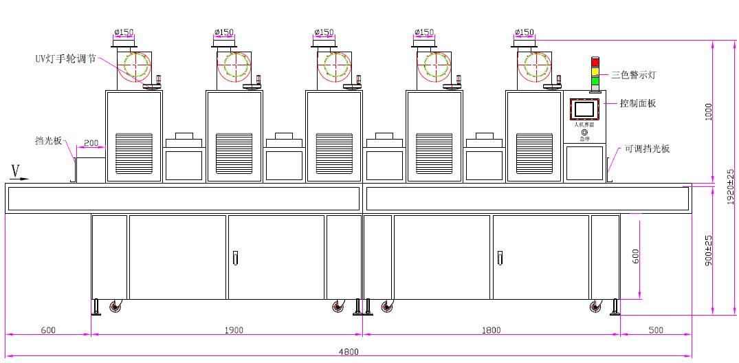 1、UV燈功率:6.0kw*5支(鹵素燈)